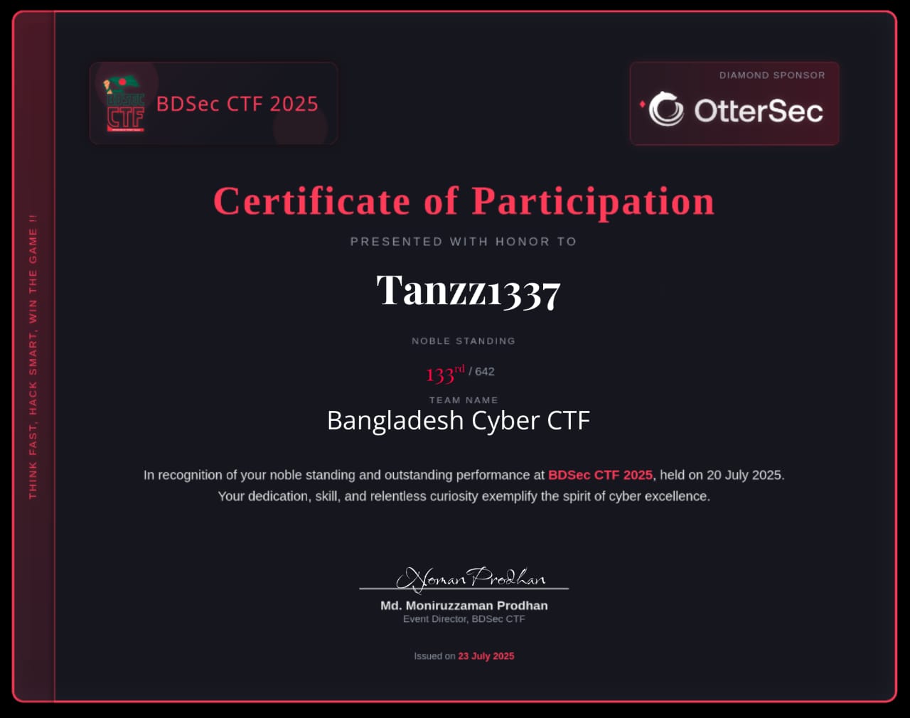 Saya adalah Web Penetration Tester,CTF Player & Cyber Security Enthusiast dengan fokus pada identifikasi dan eksploitasi kerentanan pada aplikasi web, khususnya yang berkaitan dengan OWASP Top 10. Saya bersemangat dalam menulis laporan yang jelas dan memberikan rekomendasi mitigasi yang efektif.